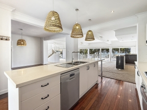 – Large kitchen with walk-in pantry, stone benchtops and bar area