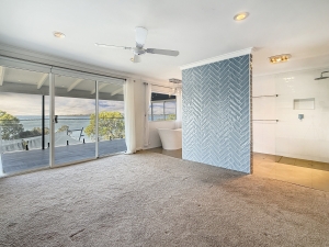 Upstairs, the second floor includes two more bedrooms, a family bathroom, and a stunning master retreat. The master bedroom features a private balcony with glass balustrade, a luxurious ensuite, and an oversized walk-in robe with custom storage. Wake up to dolphins gliding past your window and unwind with evening sunsets over the water.