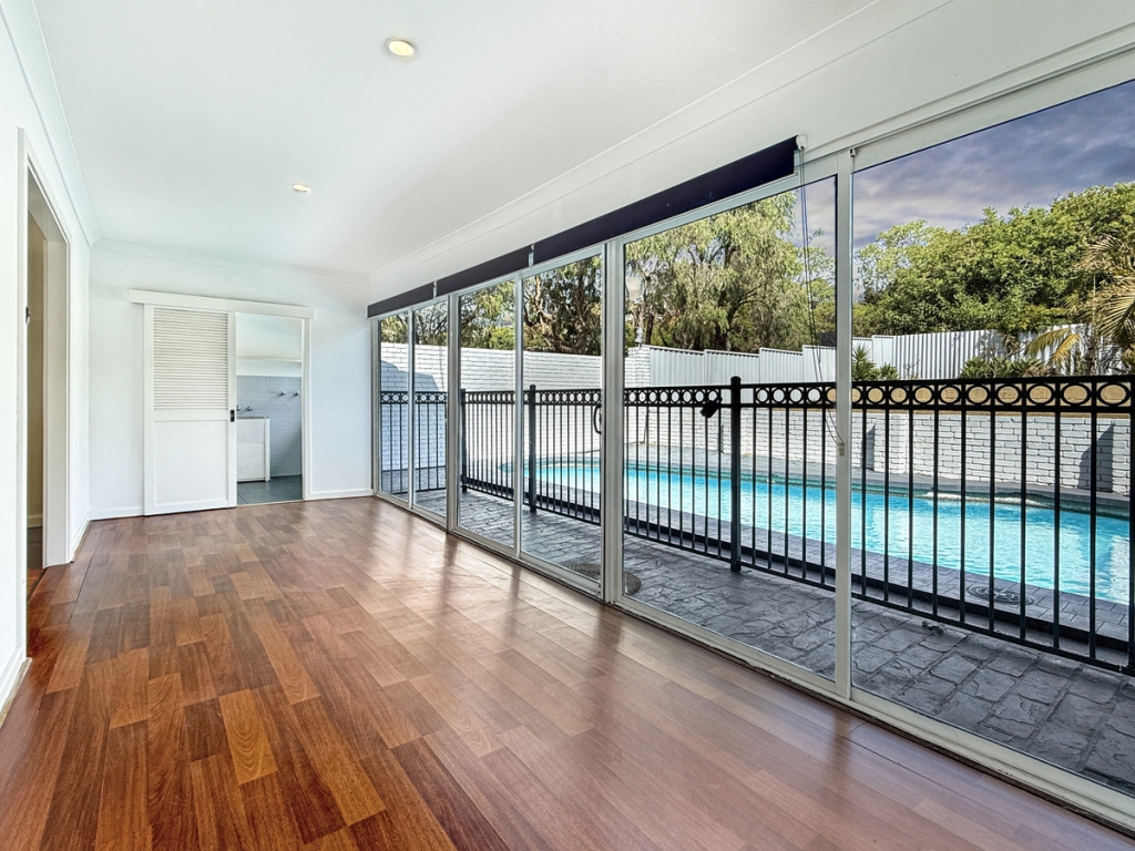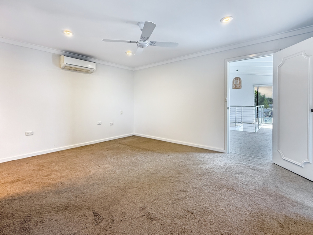 Outside, the low-maintenance grounds include a large swimming pool, alfresco entertaining area with a bar, and plenty of room for relaxed gatherings. Split system air conditioning services both upper levels, with ceiling fans throughout to keep things comfortable year-round.
