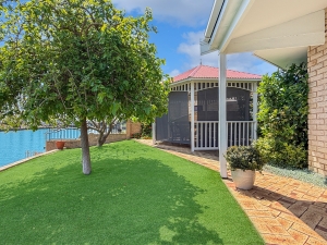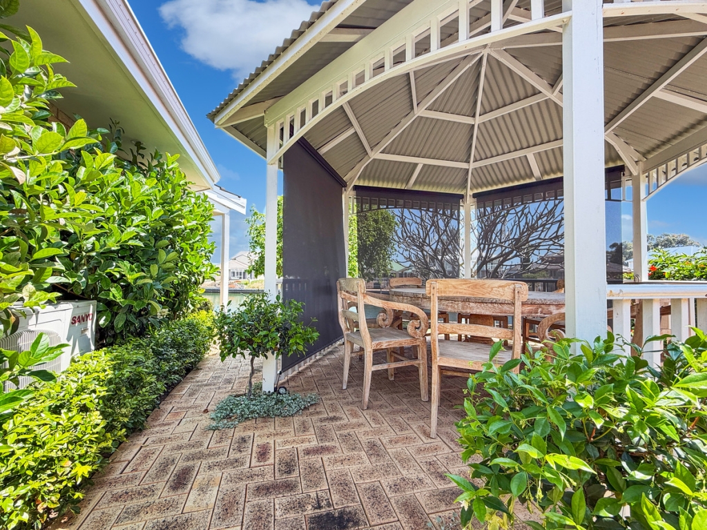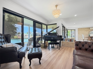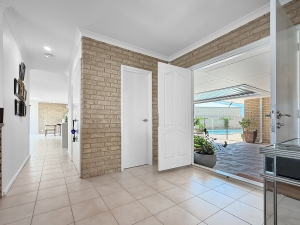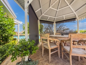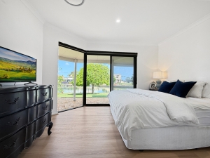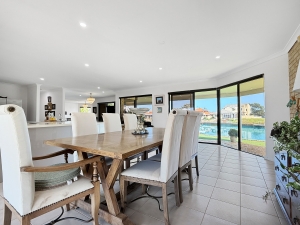 All main living and dining areas flow seamlessly to the outdoor entertaining space, overlooking the pool on one side and canals on the other. The master suite and one of the secondary bedrooms open directly onto the waterfront, while the other two enjoy views of the central courtyard with its sparkling pool, built-in BBQ, and alfresco area — a private resort-style setup ideal for entertaining or relaxing. The alfresco verandah roof can also be opened to let in natural light on those beautiful summer days.