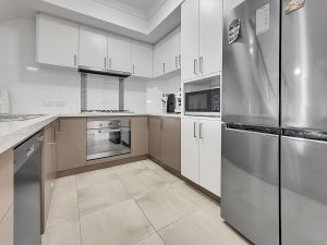* Modern kitchen with stainless steel oven and dishwasher